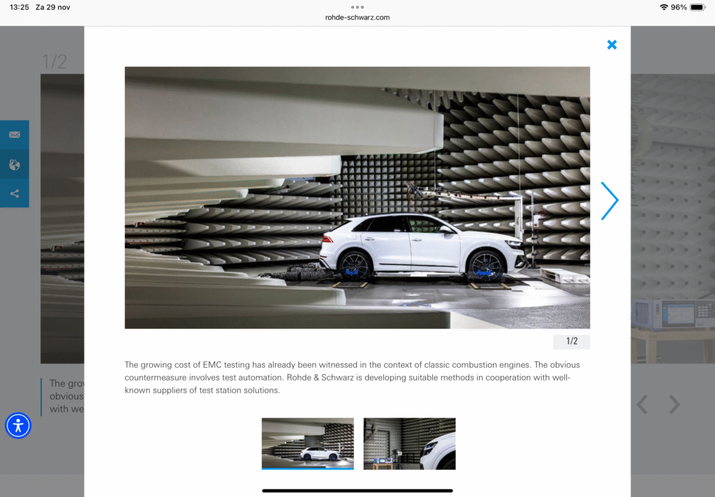 We are working with our customers to incrementally develop many new EMC and functional performance tests while optimizing the handling of the test landscape inside EMC chambers. The goal is to enable the next steps on the road toward electric vehicles and automated driving.